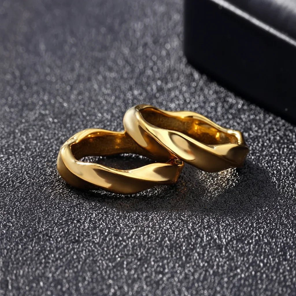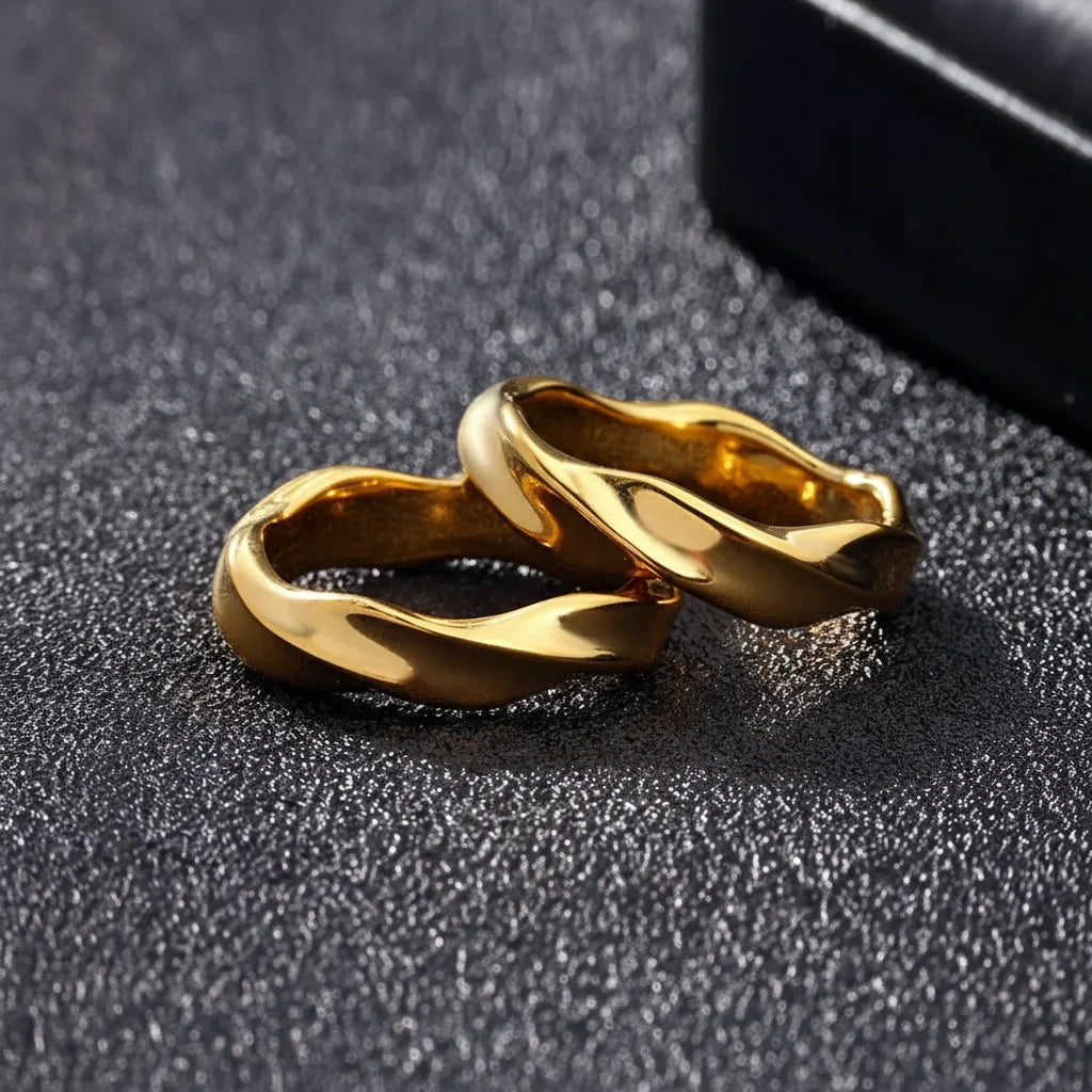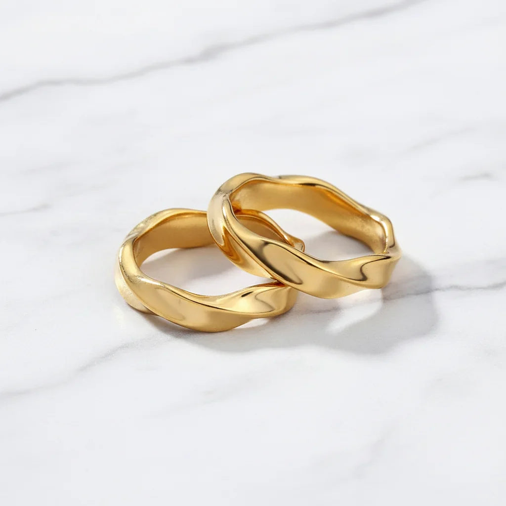 Imaginez une onde de raffinement qui brille à chaque instant de votre quotidien. Ces bagues, au design audacieux et intemporel, sont pensées pour vous. Résistantes à l'eau, elles subliment votre style sans effort, du premier café à la douce lueur du soir. Une élégance qui vous ressemble, sans jamais s'interrompre.